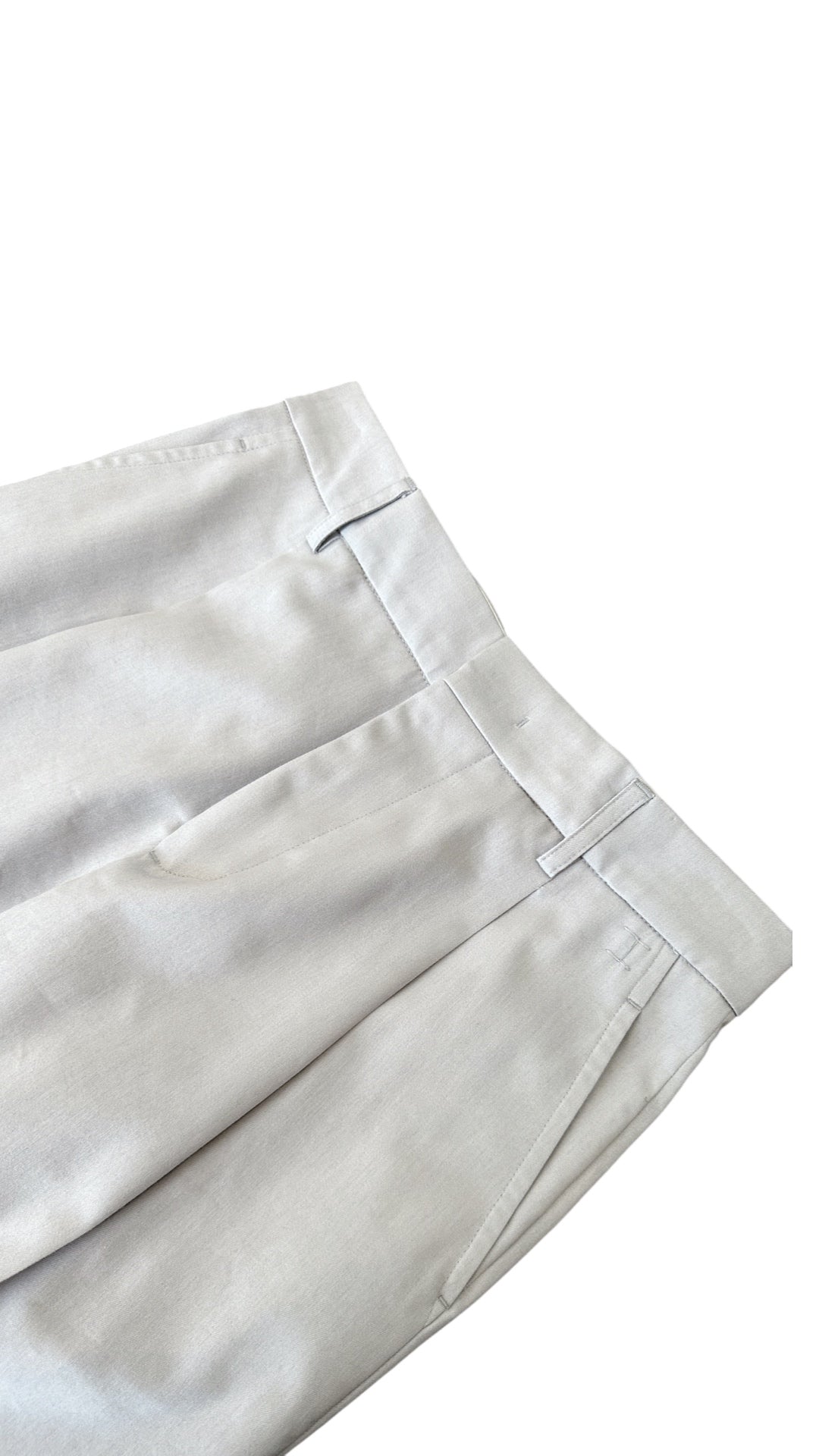 Calla lily trousers bottom with turn-up, secured by a concealed button.