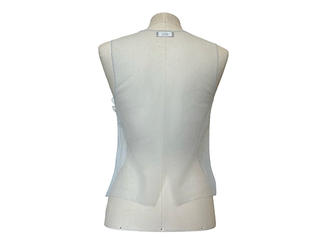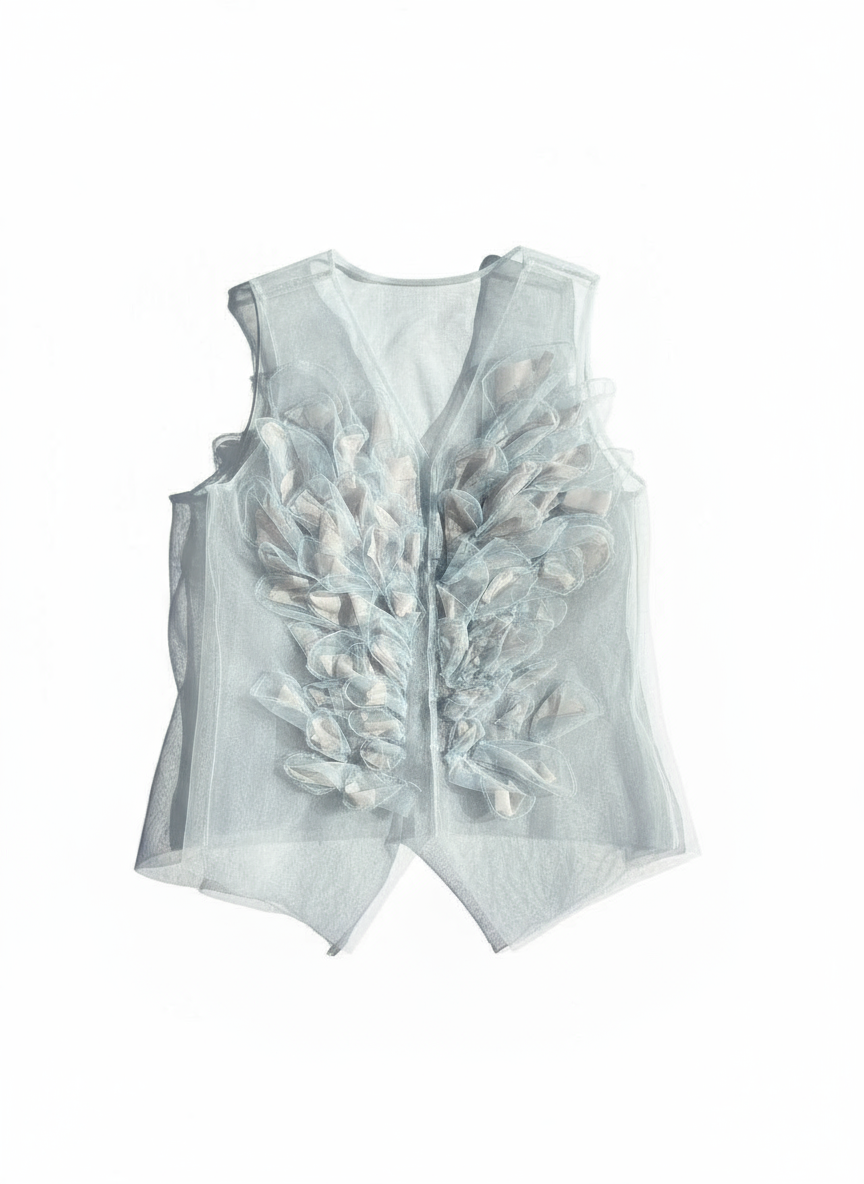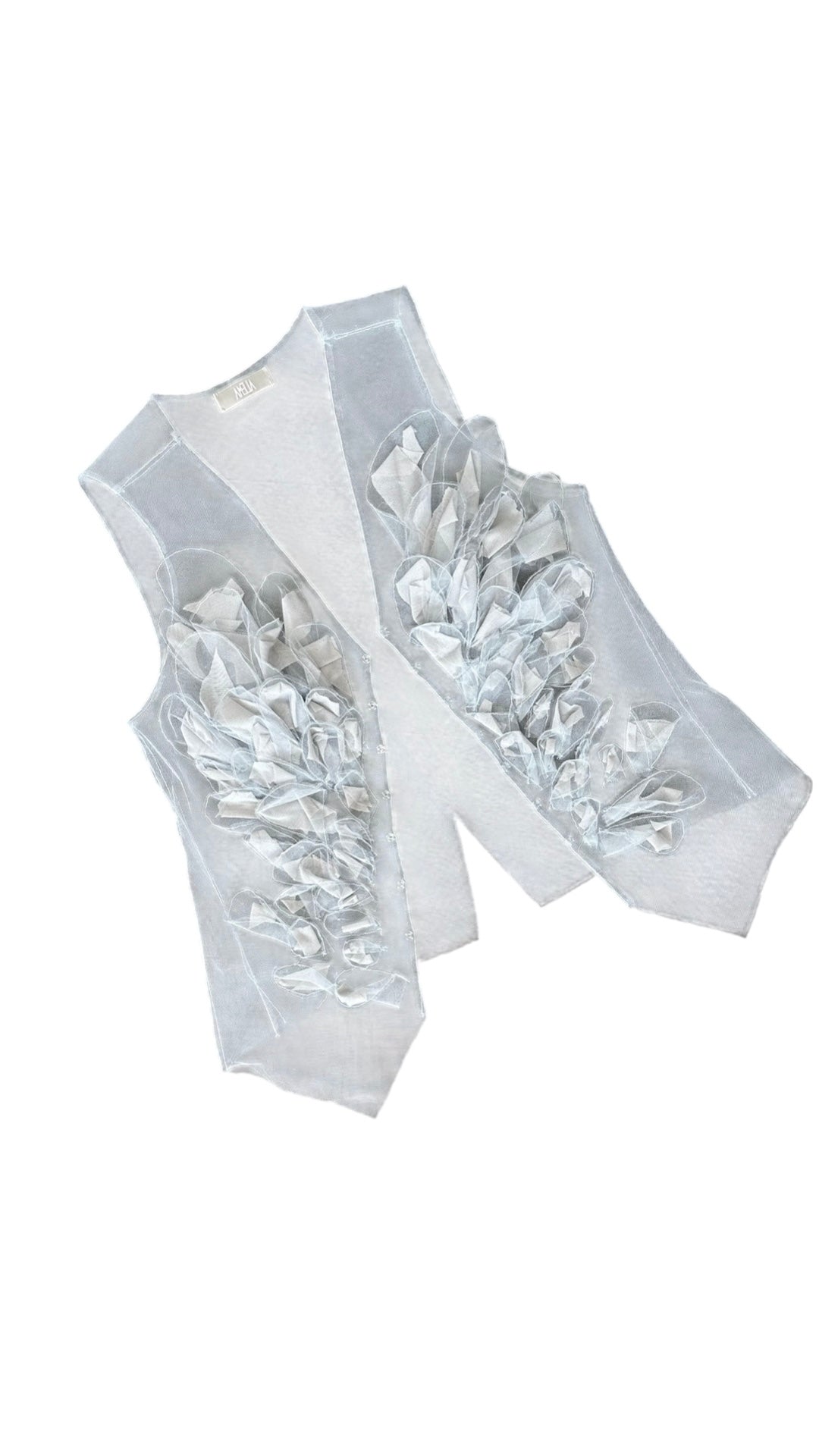 Top unisex in tulle con applicazioni fatte a mano.