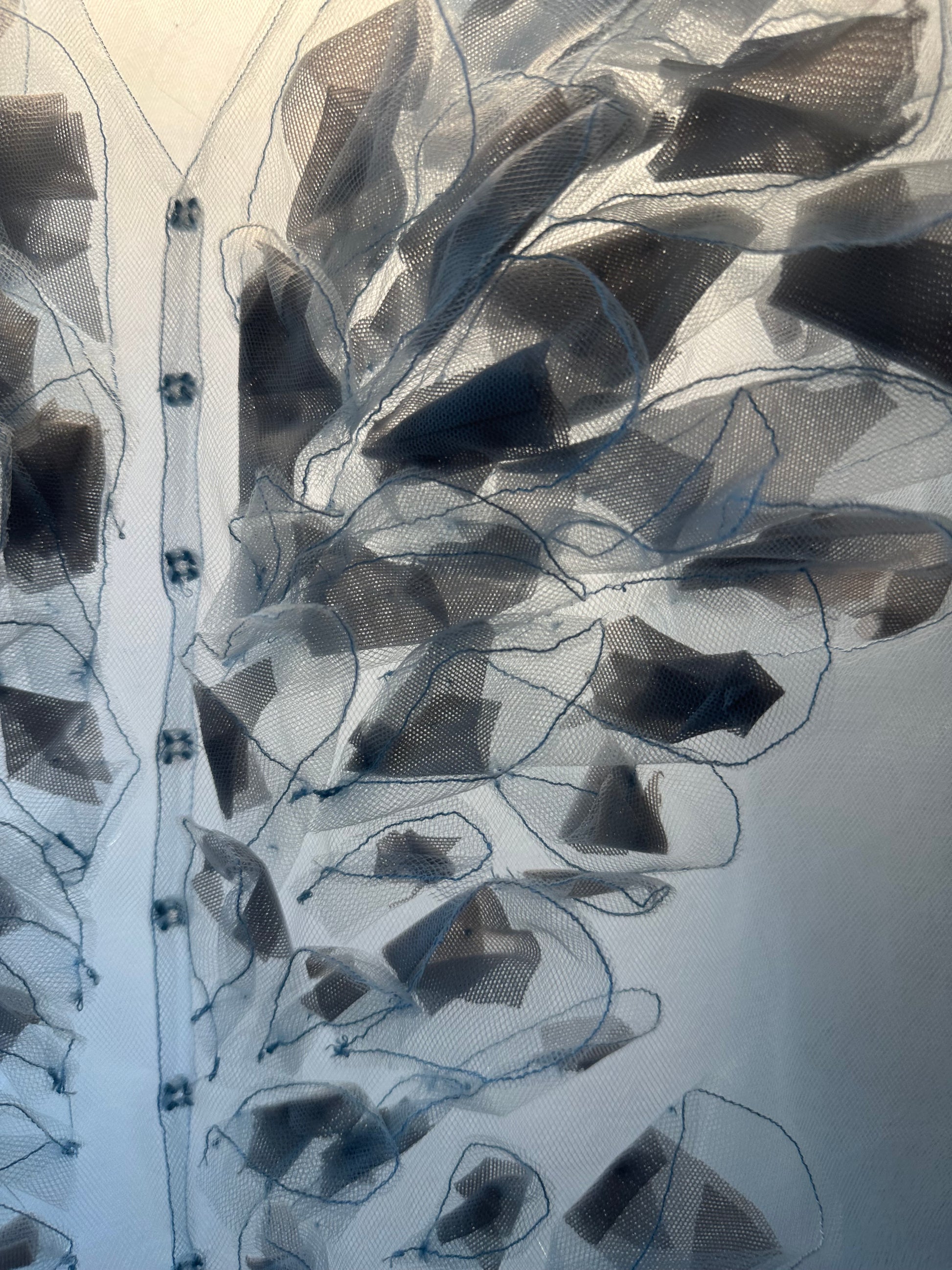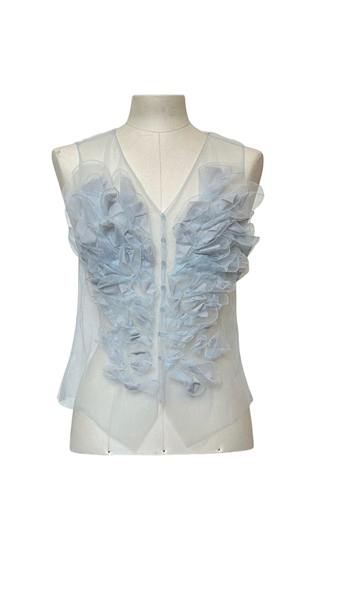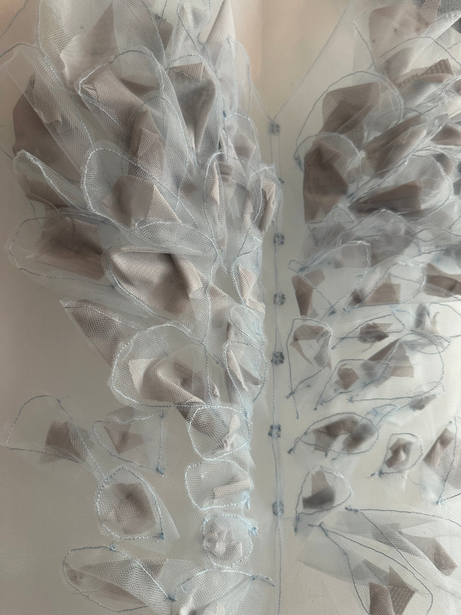 Top unisex in tulle con applicazioni fatte a mano.